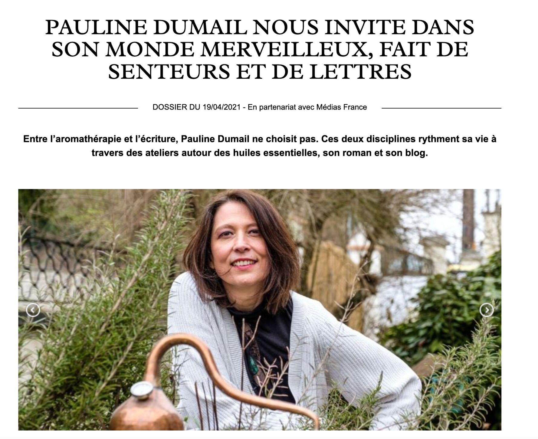 Fascinée par le pouvoir des plantes qu’elle découvre il y a quinze ans en oeuvrant dans l’univers de la cosmétique, Pauline Dumail nous fait partager avec générosité sa passion des arômes grâce à une plume nourrie du regard profond et incroyablement juste qu’elle pose sur l’Humain.