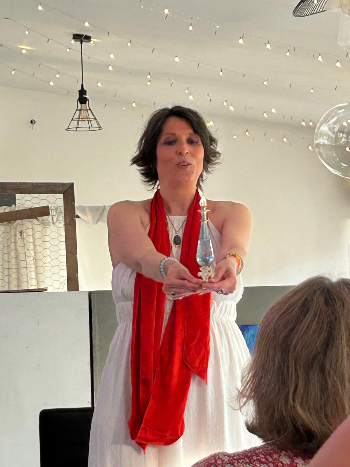 Un spectacle “Soin” faisant découvrir les bienfaits de l’olfactologie et la profondeur que peuvent avoir les huiles essentielles si on se laisse toucher par elles.
